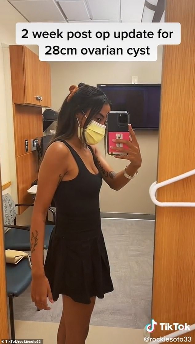 Rodriguez enthüllte die Geschichte auf TikTok und sagte, der Tumor sei auf einen Durchmesser von 28 cm angewachsen – die Höchstgröße für Ovarialzysten.